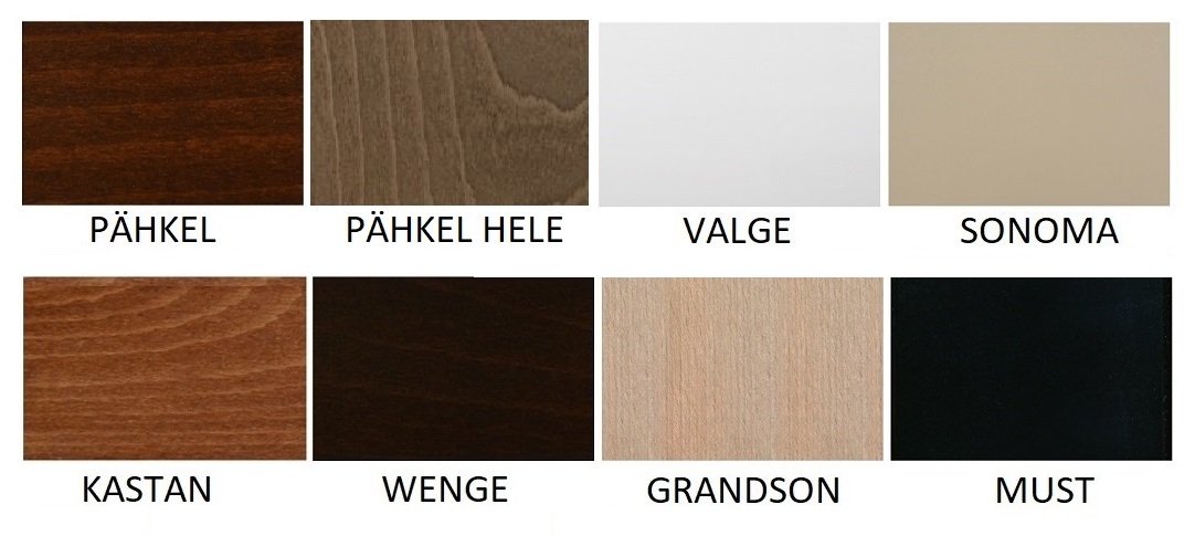Puidu värvid: pähkel; pähkel hele; valge; sonoma; kastan; wenge; grandson; must.