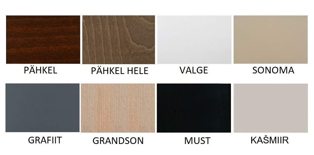 Puidu värvid: pähkel; pähkel hele; valge; sonoma; grafiit grandson; must; kašmiir.