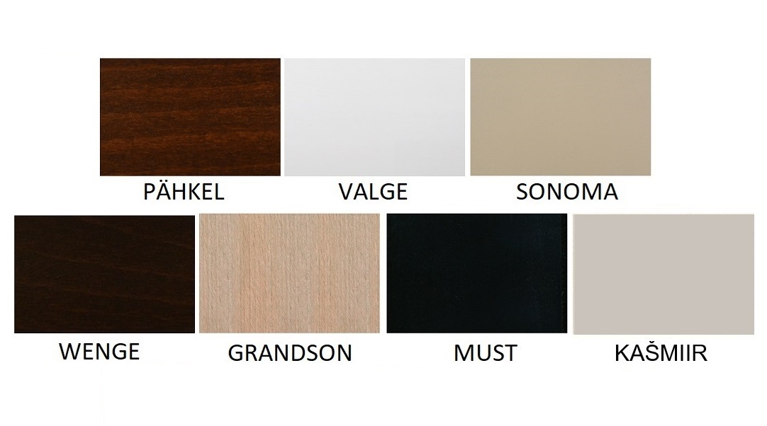 Puidu värvid: pähkel; valge; sonoma; wenge; grandson; must; kašmiir.
