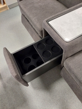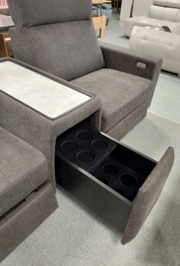 Komplekt – elegantne relax mehhanismiga tugitool + peidetud baarikapp/riiul + relax mehhanismiga tugitool.