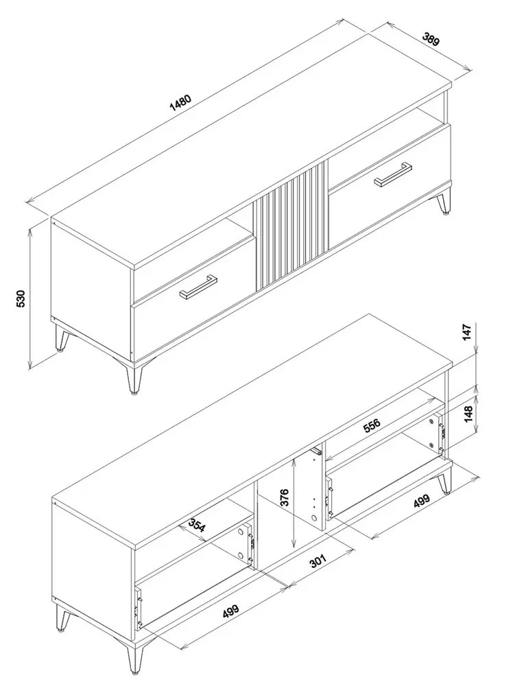 Tv-alusel on 1 uks ja 2 sahtlit.