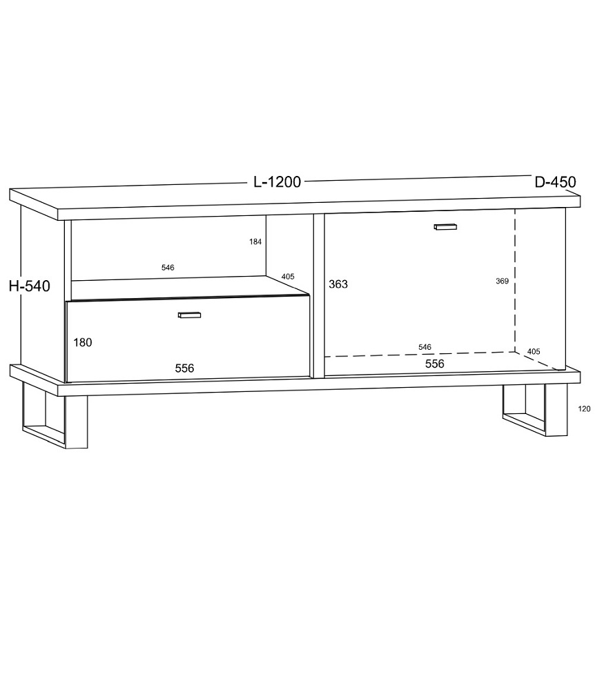 Tv-alusel on 1 uks ja 1 sahtel.
