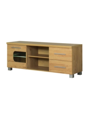 Tv-alusel on 1 osaliselt klaasiga uks, 2 sahtlit ja avatud riiulid. Ukse taga on klaasist riiul.