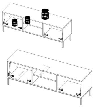 Tv-alusel on 2 klapiga ust, mis avanevad alla.