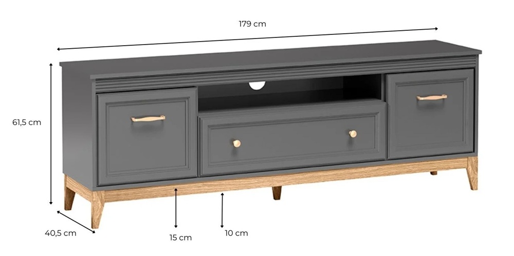 Jalad: tamme täispuidust (15 cm/tv-aluse alune kõrgus 10 cm – loob kerge ja õhulise ilme ning võimaldab lihtsat puhastust).