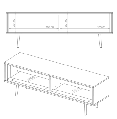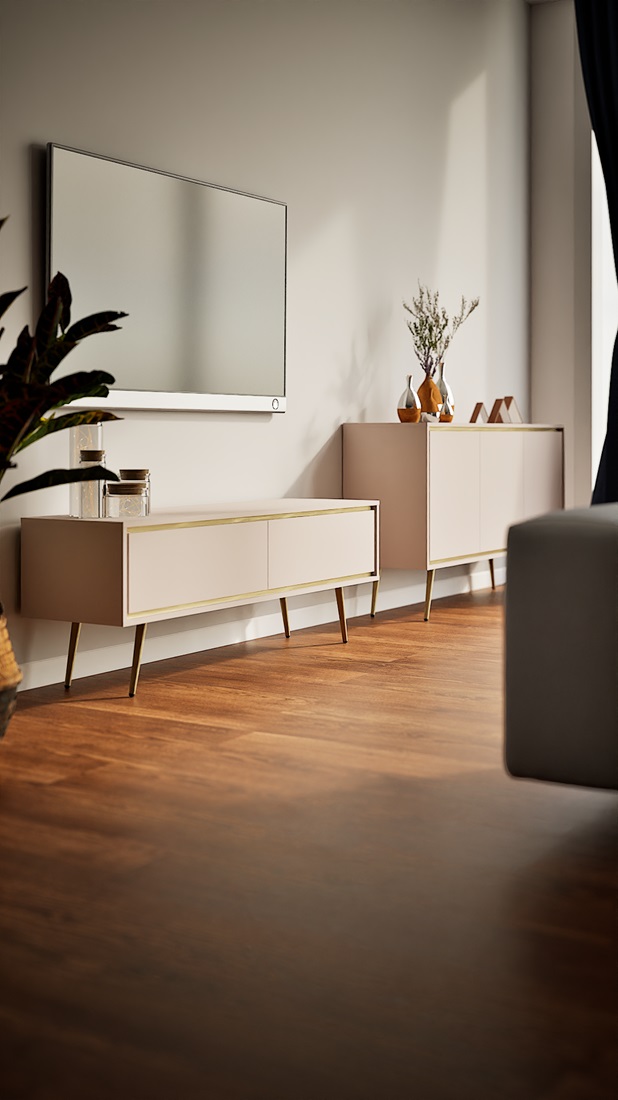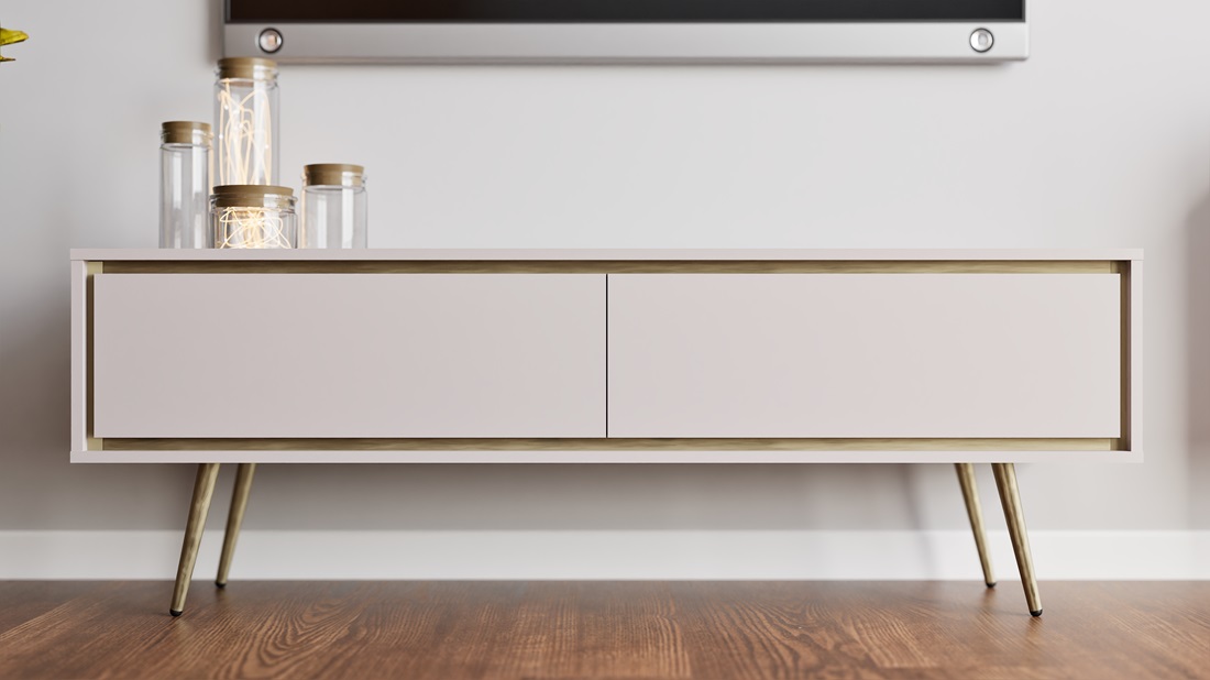 Tv-alus on ilma käepidemeteta/avaneb peale vajutades.