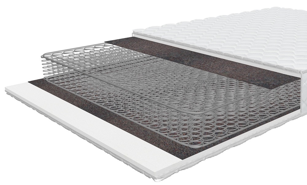 Kahepoolne, keskmise tugevusega madrats, mis põhineb Bonnell süsteemi vedruplokil.