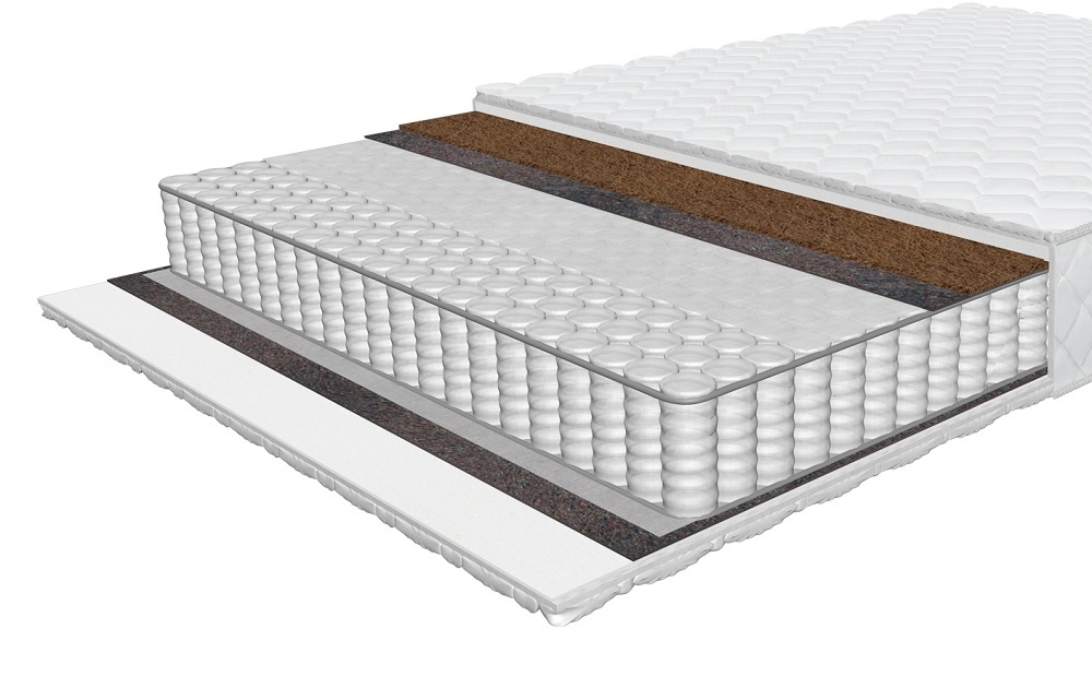 Vedrude vahel olev vildikiht ja 1 cm paksune lisakiht naturaalsest kookoskiust muudavad madratsi tugevamaks.