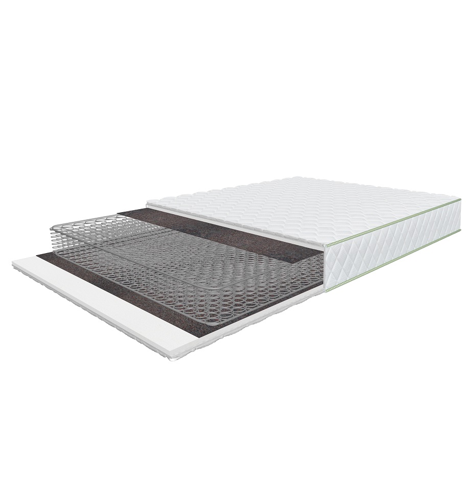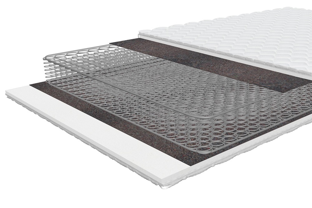 Kahepoolne keskmise tugevusega madrats, mis põhineb Bonnell süsteemi vedruplokil, tugevdatud metallraamiga.