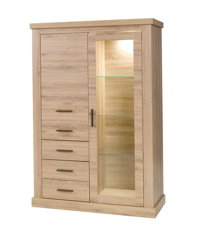 - Vitriinkapil on 2 ust ja 4 sahtlit. Suurem uks on osaliselt klaasiga ja selle taga on klaasist riiulid.
