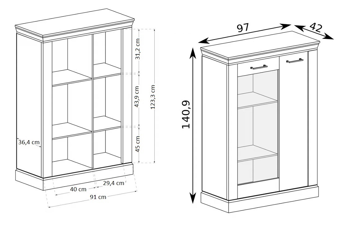 Vitriinkapil on 2 ust. 1 uks on osaliselt klaasiga.