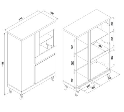 Siseriiulid: 16 mm paksusest lamineeritud puitlaastplaadist.