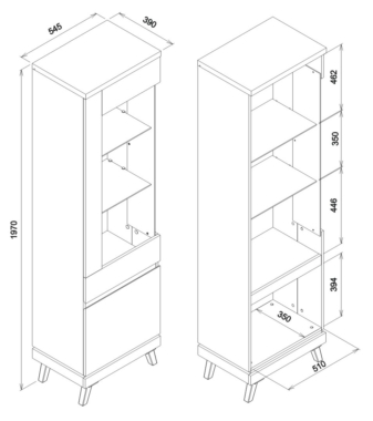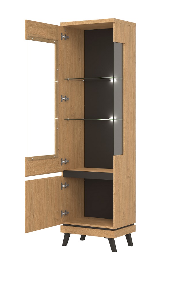 Vitriinkapil on 2 ust (avanevad vasakule). 1 uks on osaliselt klaasiga.