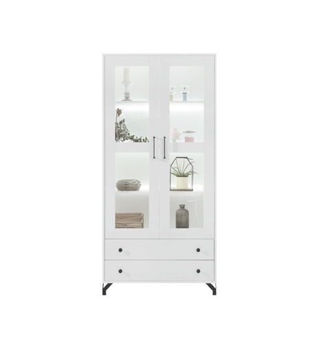 Vitriinkapil on 2 osaliselt klaasiga ust ja 2 sahtlit.