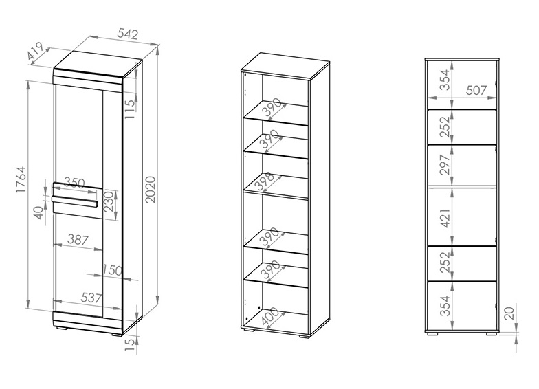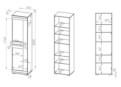 Vitriinkapil on 1 osaliselt klaasiga uks. Kokkupanekul võimalik valida ukse avanemise poolt (paremale või vasakule).