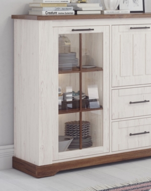 Vitriinkapil on 3 sahtlit ja 1 uks. Uks on osaliselt klaasiga.