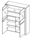 Vitriinkapil on 2 osaliselt klaasiga ust. Uste taga on riiulid.