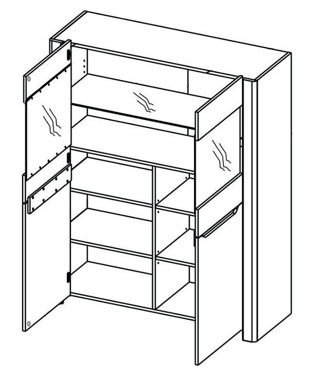 Materjal: kvaliteetne ja vastupidav melamiinkattega laminaat + klaas.