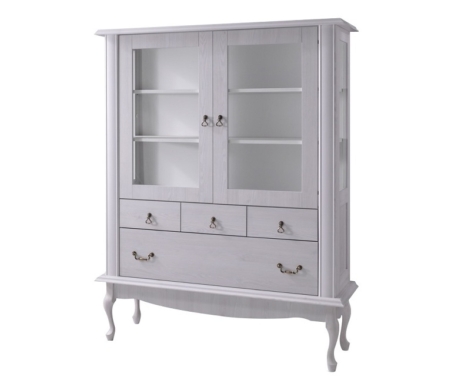 Vitriinkapil on 2 osaliselt klaasiga ust, 3 kitsast sahtlit ja 1 lai sahtel.