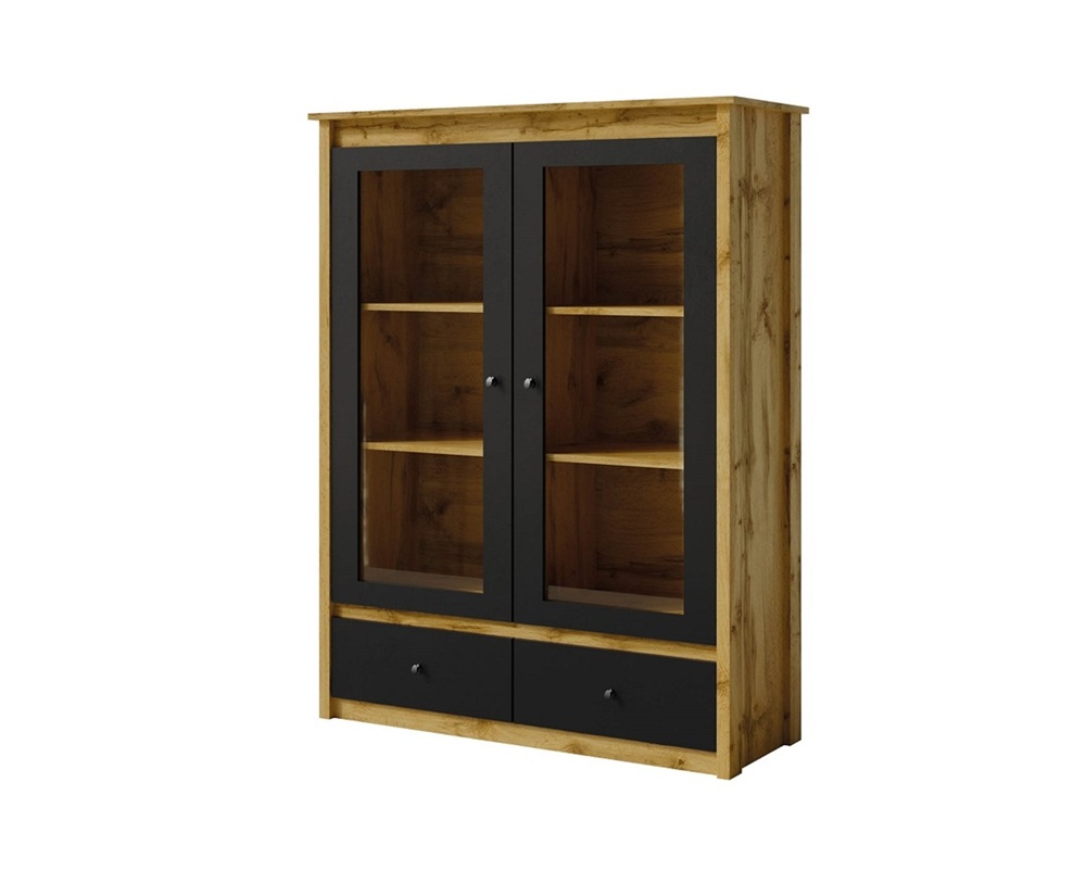 Vitriinkapil on 2 osaliselt klaasiga ust ja 2 sahtlit.