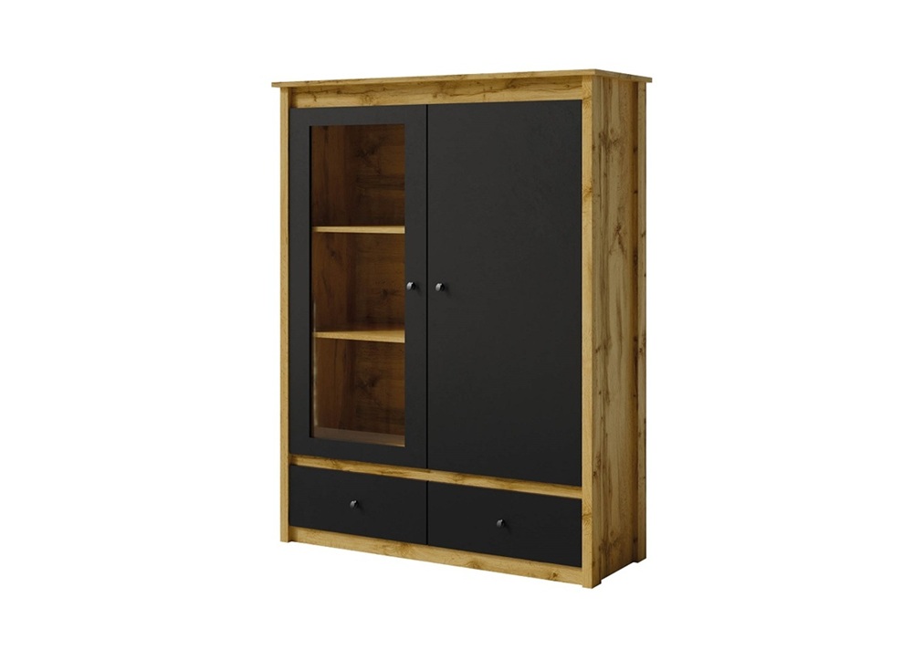 Vitriinkapil on 1 osaliselt klaasiga uks, 1 ilma klaasita uks ja 2 sahtlit.