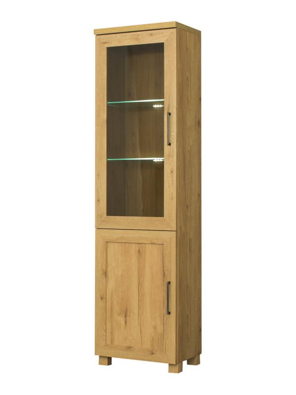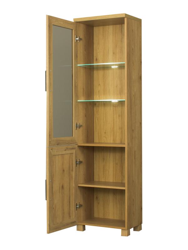 Vitriinkapil on 1 osaliselt klaasiga uks. Ukse taga on 2 tavalist ja 2 klaasiga riiulit.