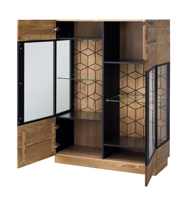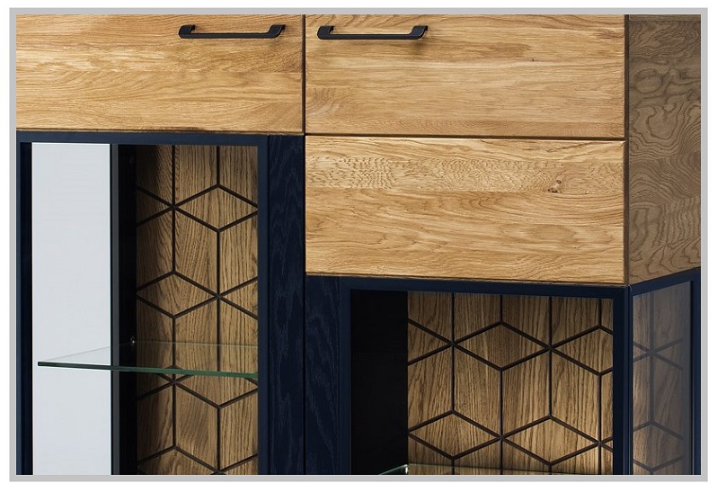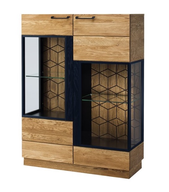 Esipinnad: harjatud tammepuit + karastatud klaas.