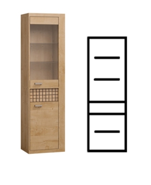 Ülemine uks on osaliselt klaasiga. Ukse taga on klaasist riiulid.