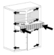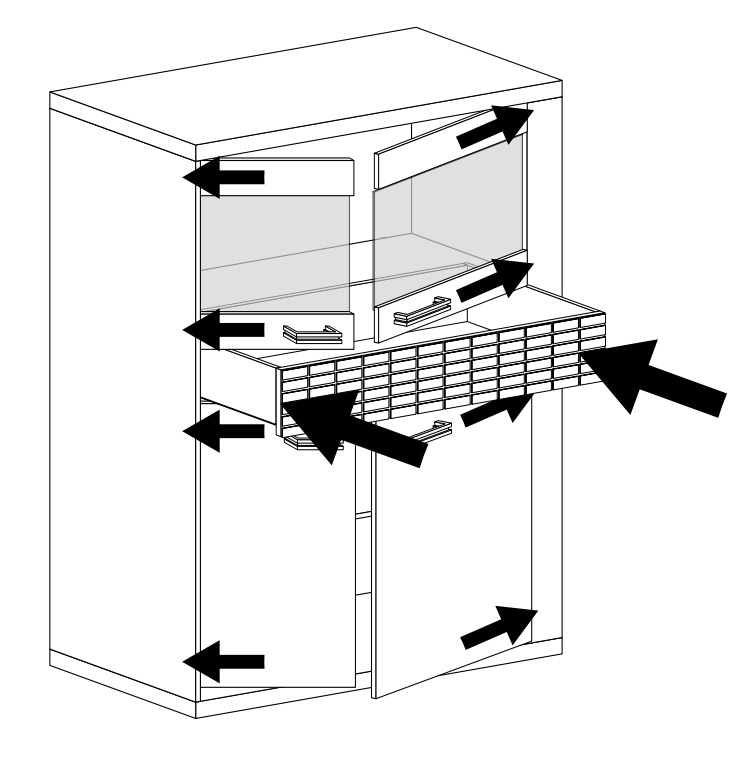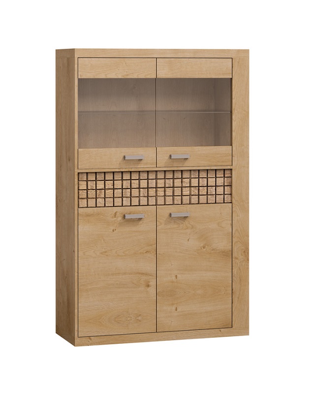 Ülemised uksed on osaliselt klaasiga. Uste taga on klaasist riiulid.