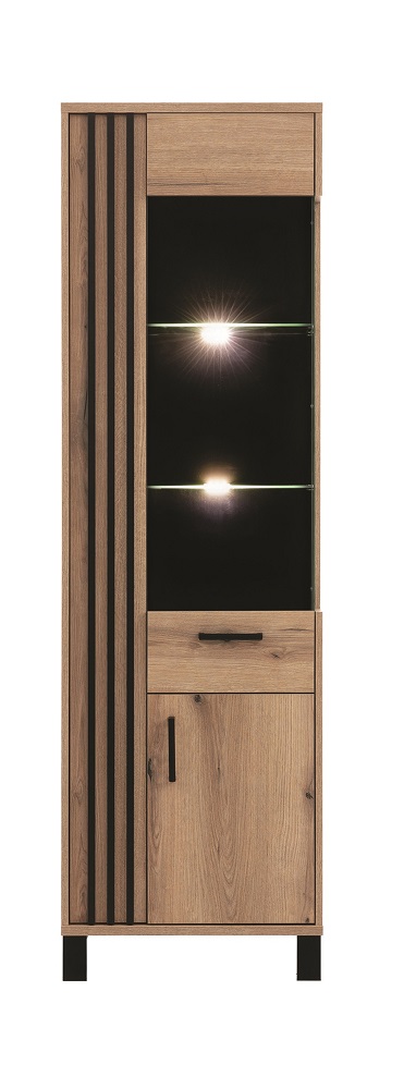 Klaasiga ukse taga on 2 klaasist riiulit, millele on võimalik lisavalikuna juurde osta led valgustus.