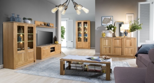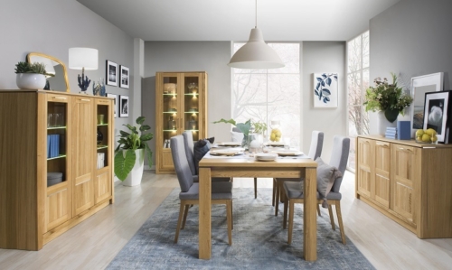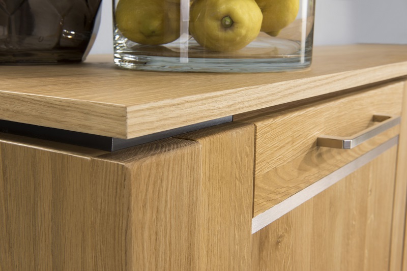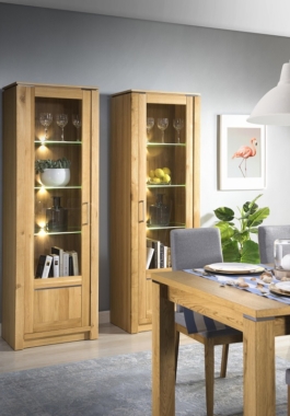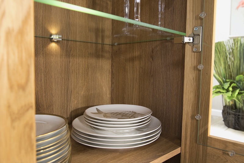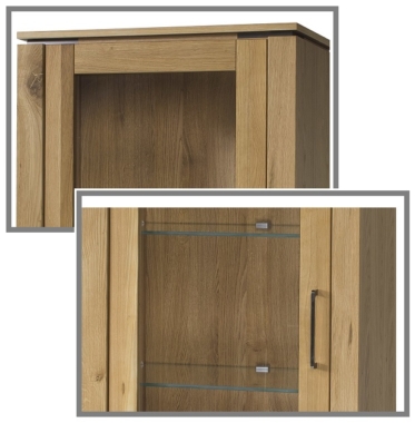 Materjal: esipind – naturaalne tammepuit + klaas; korpus – naturaalse tammespooniga mööbliplaat.