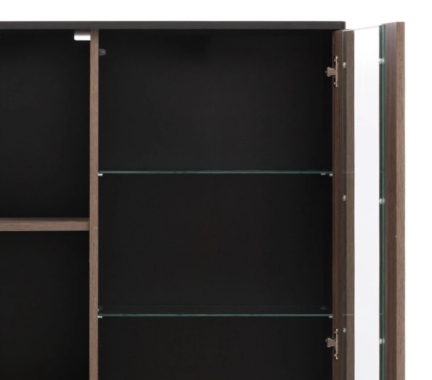 Klaasiga ukse taga on 3 tugevast karastatud klaasist riiulit.