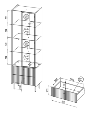 Vitriinkapil on 2 ust ja 2 sahtlit. Üks uks on klaasiga.