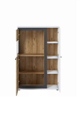 Vitriinkapil on 2 ust. Suurem uks on osaliselt klaasiga.