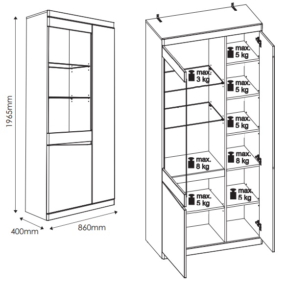 Materjal: kvaliteetne ja vastupidav melamiinkattega laminaat + MDF.
