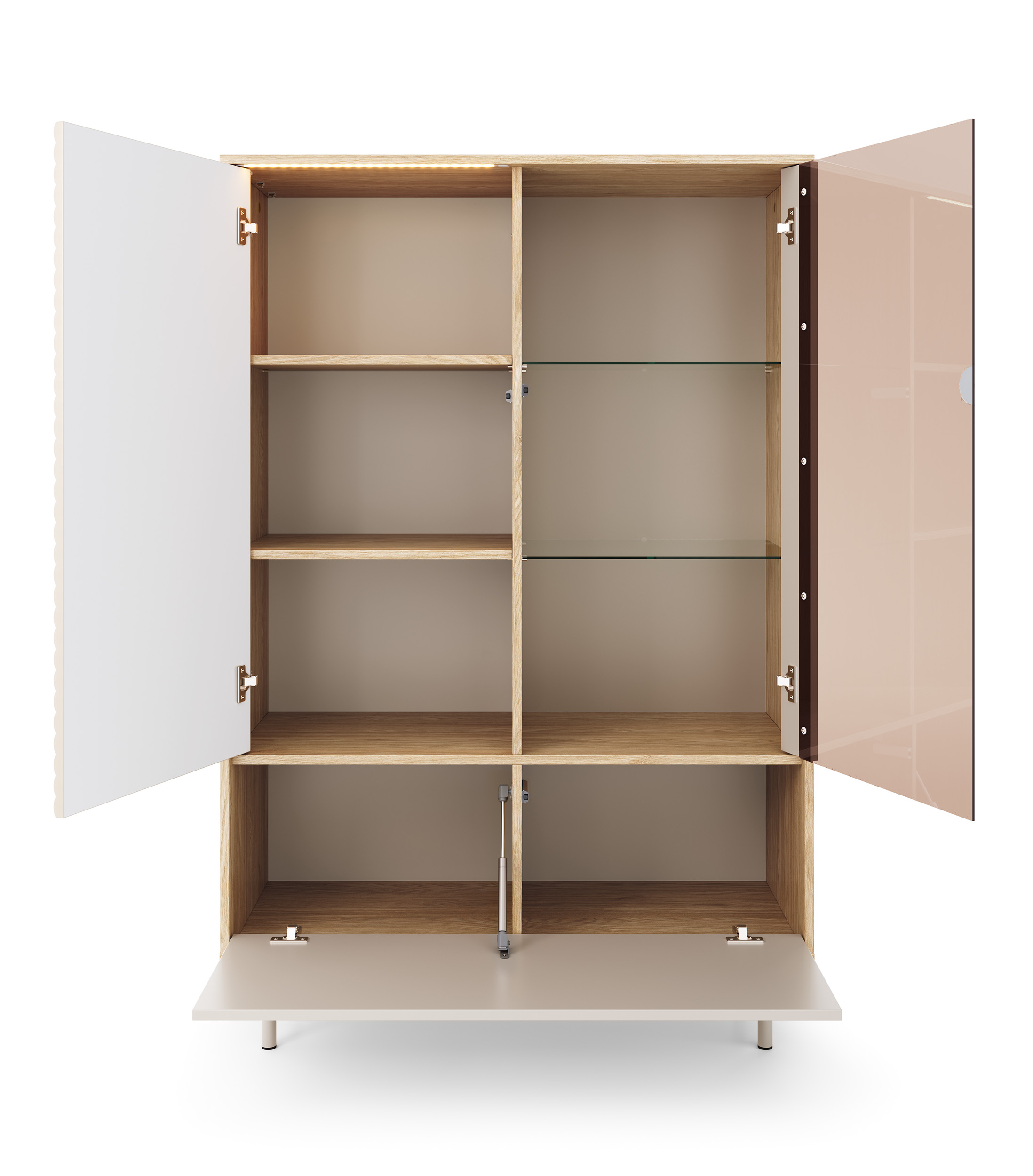 Vitriinkapp koosneb kahest uksest, osaliselt klaasitud osast ja ühest allapoole avanevast klapist.