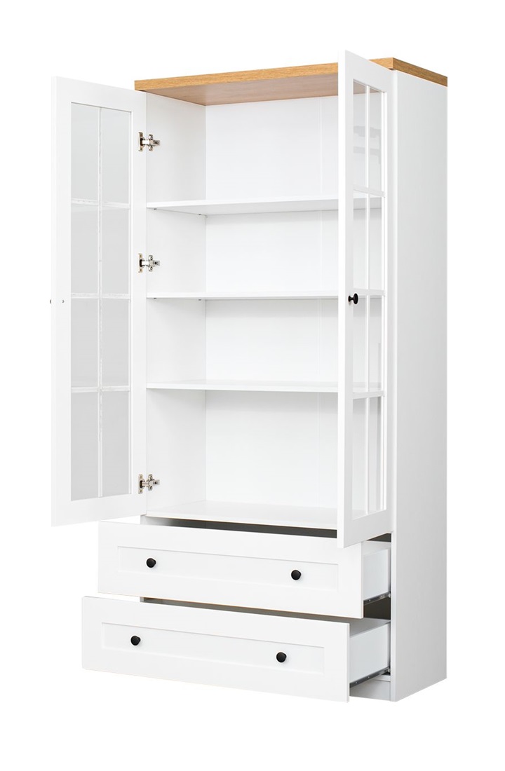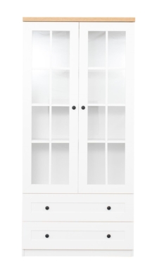 Vitriinkapil on 2 ust ja 2 sahtlit. Uksed on osaliselt klaasiga.