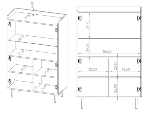 Uste taga on 1 tugevast klaasist riiul ja 1 mööbliplaadist riiul.