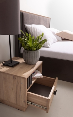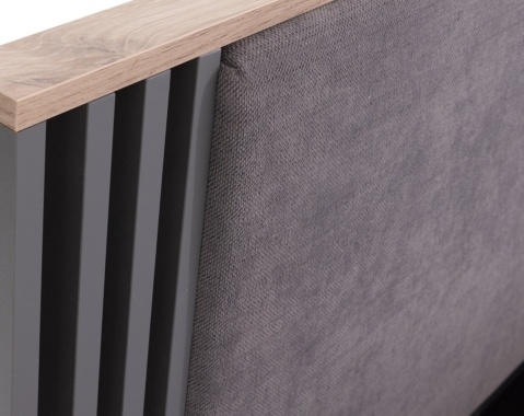 Voodi karkass on valmistatud lamineeritud mööbliplaadist ja kaetud kangaga (Molly 85).