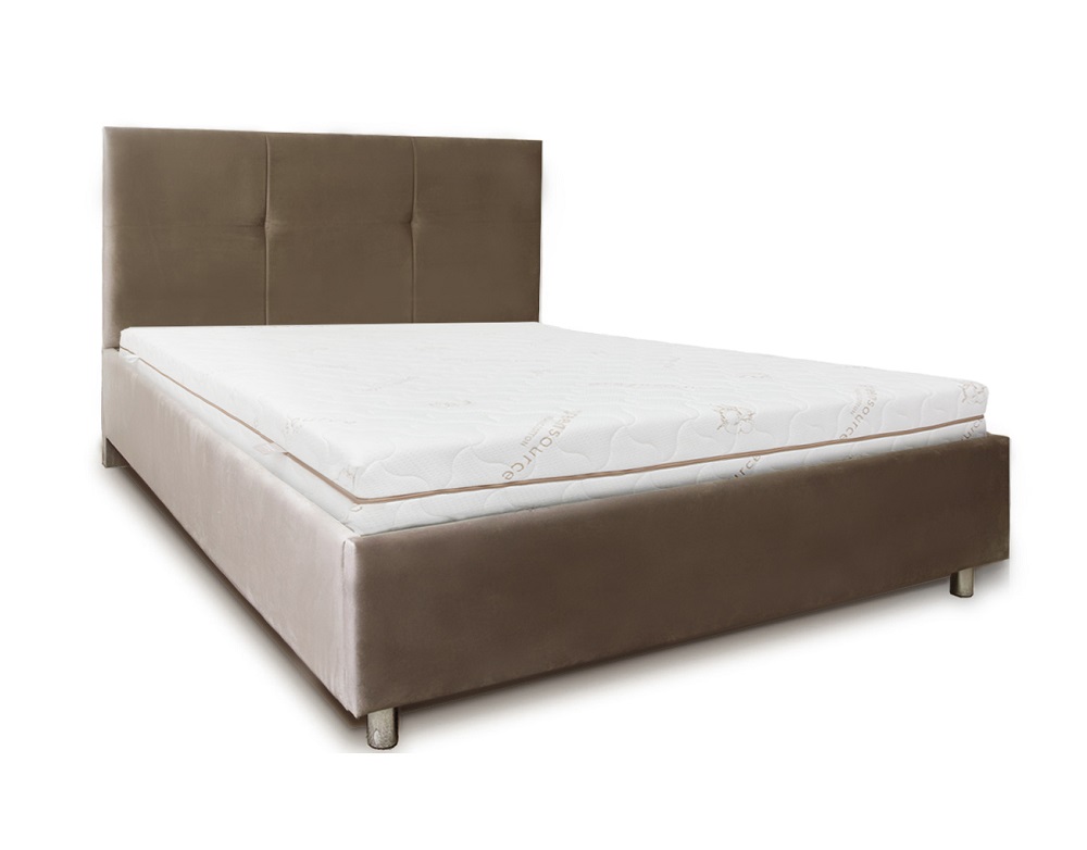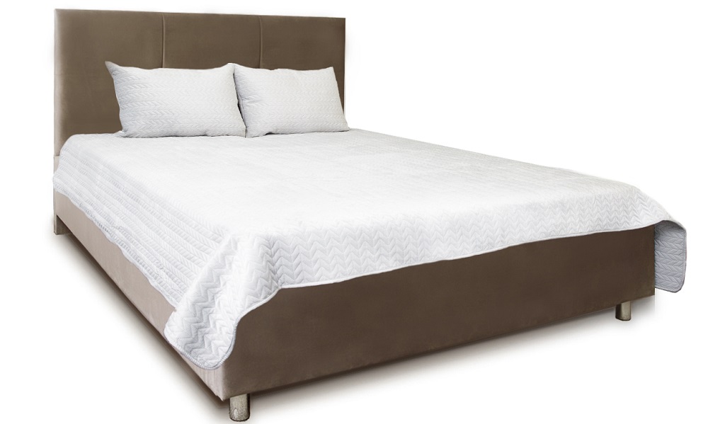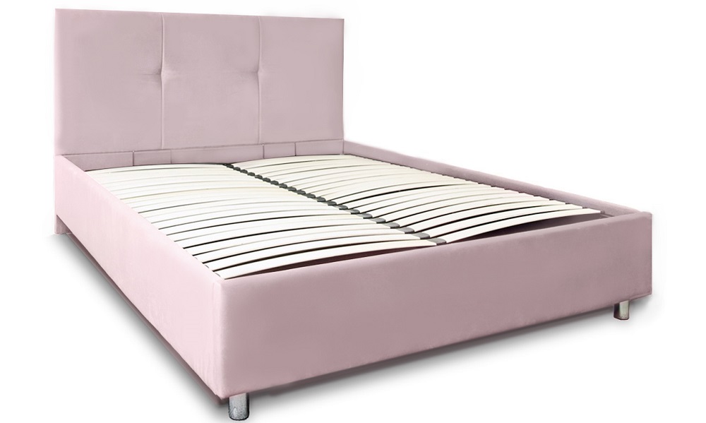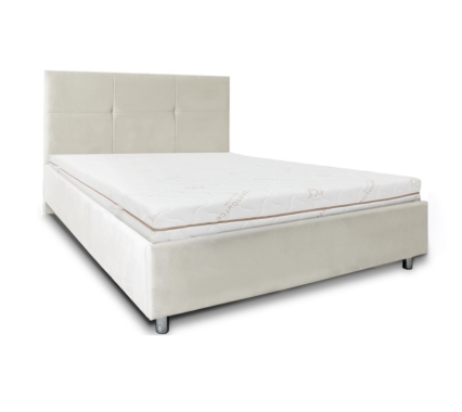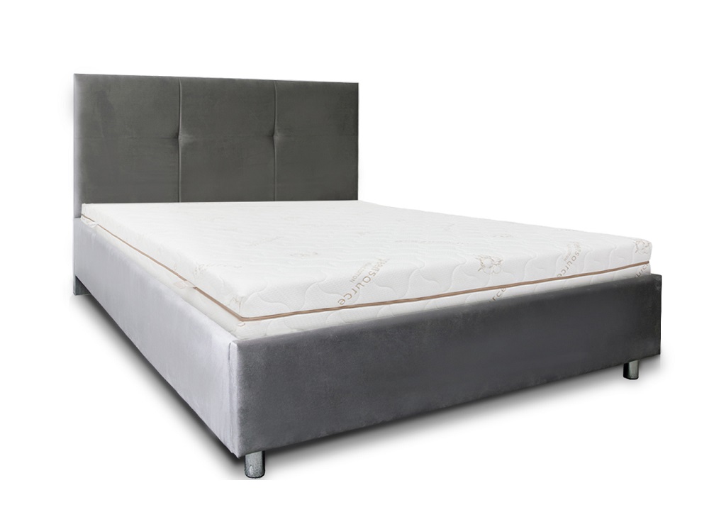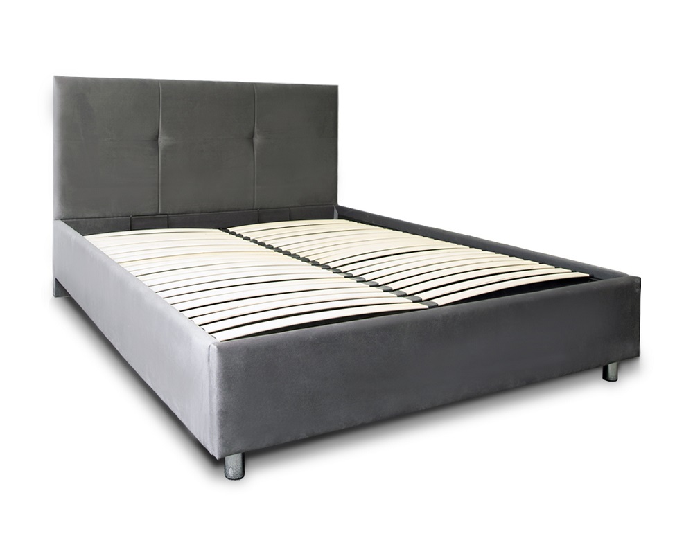 Voodi karkass on valmistatud lamineeritud mööbliplaadist ja kaetud veluurkangaga.