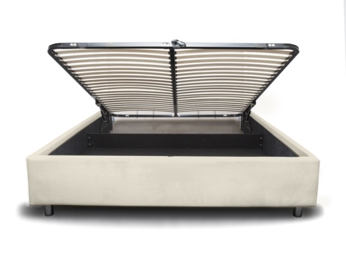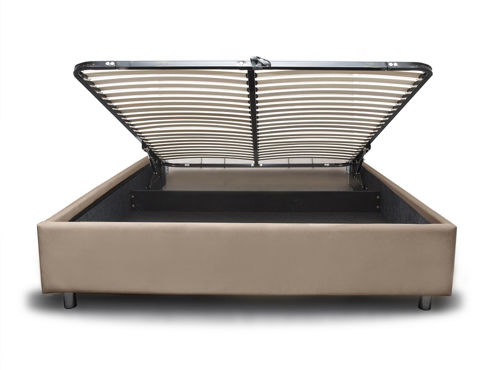 Madratsialus on metallist raamiga ning puidust lippidega – gaasiamordiga ülesse tõstetav.