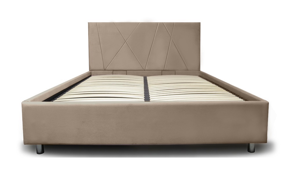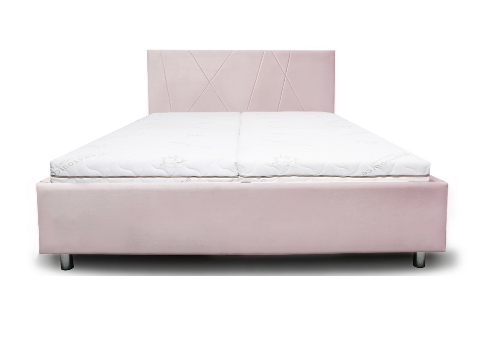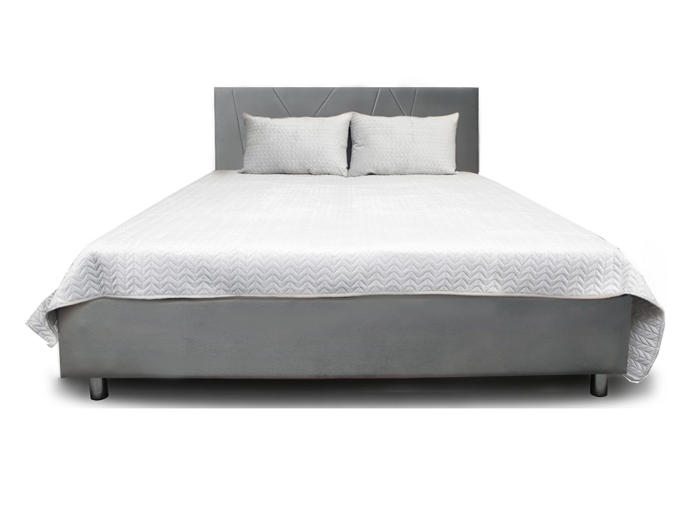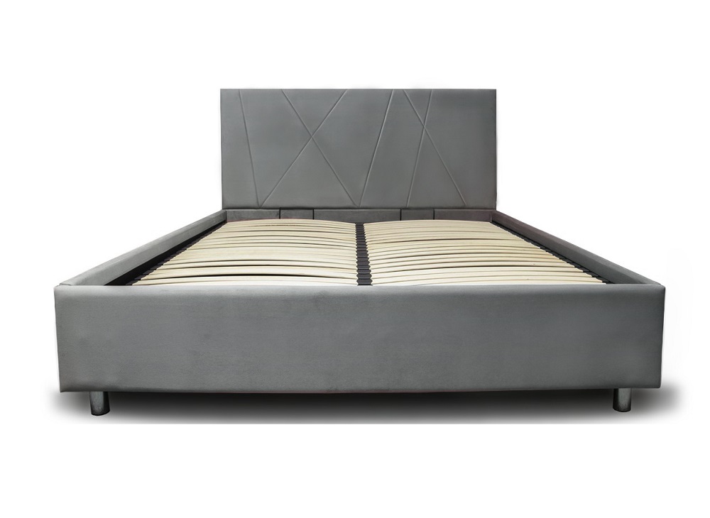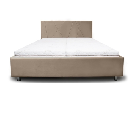 Voodi karkass on valmistatud lamineeritud mööbliplaadist ja kaetud veluurkangaga.
