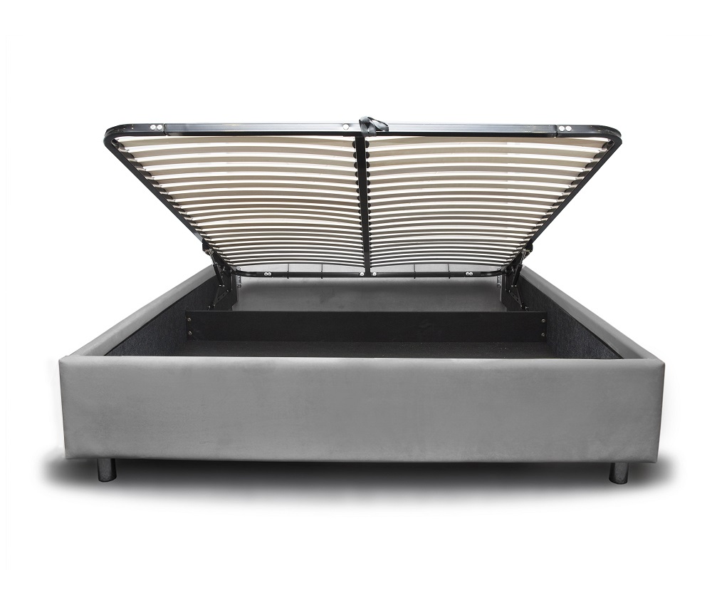 Madratsialus on metallist raamiga ning puidust lippidega – gaasiamordiga ülesse tõstetav.