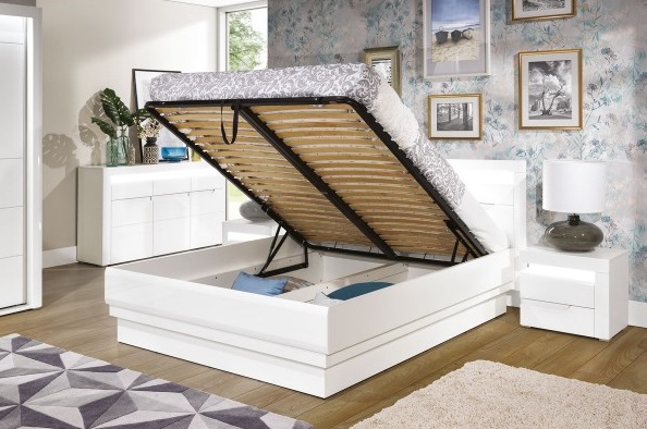 Komplekti kuulub ülestõstetav voodiraam ja pesukast.
