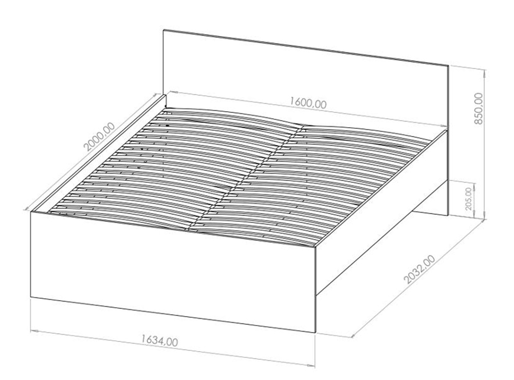 Voodi Maxione MX04 joonis mõõtudega