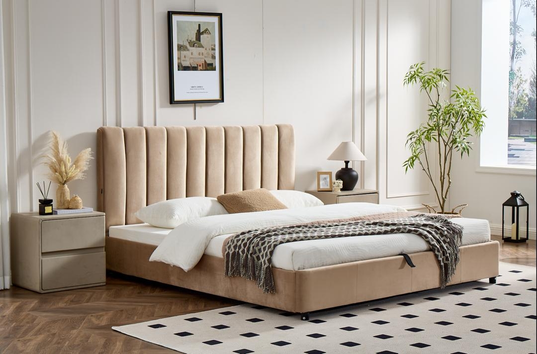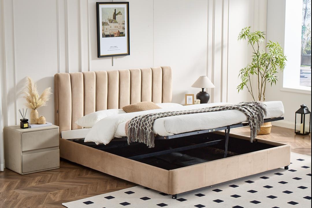 Voodi on tõstemehhanismi ja pesukastiga. NB! Pesukasti põhi on kangast.