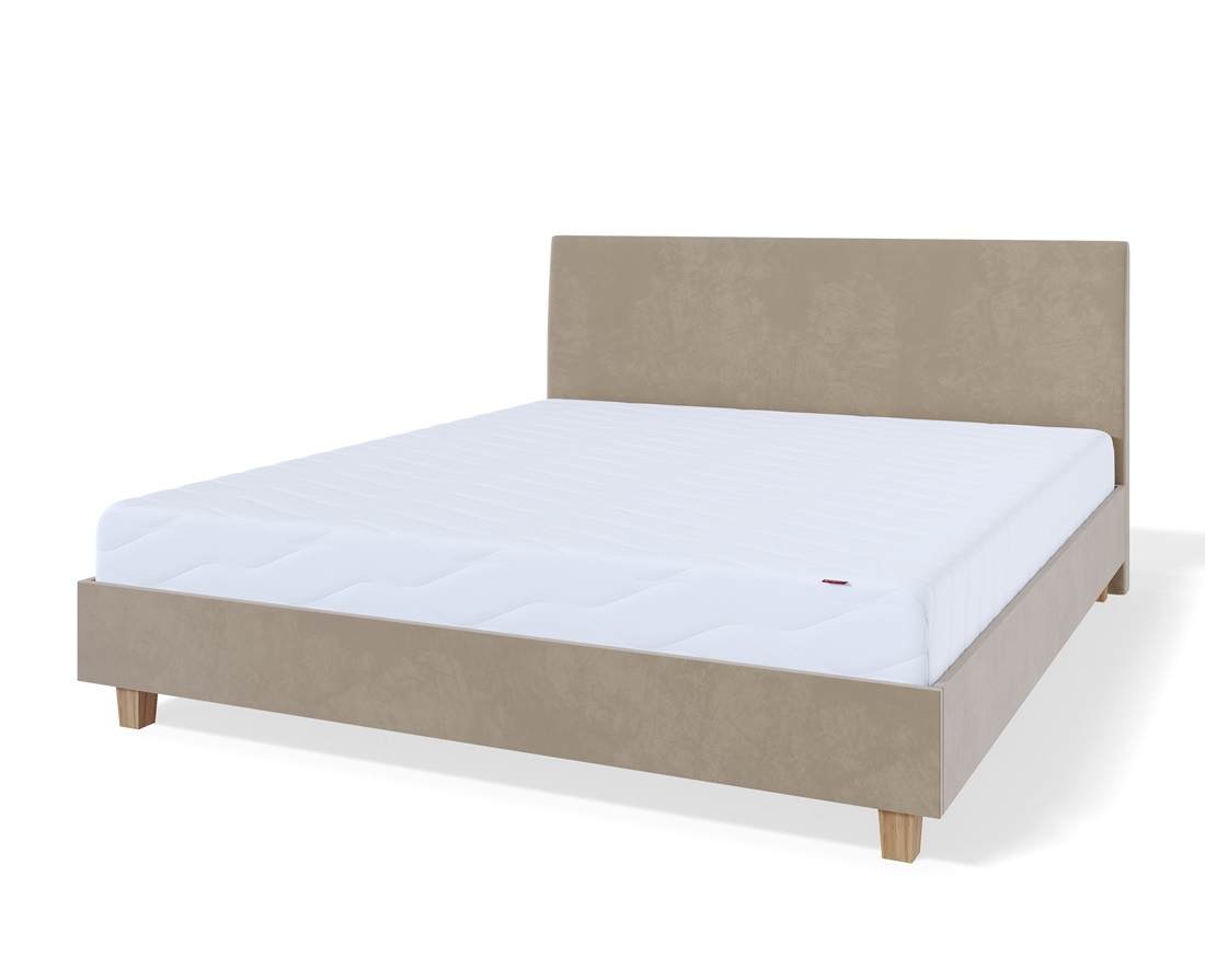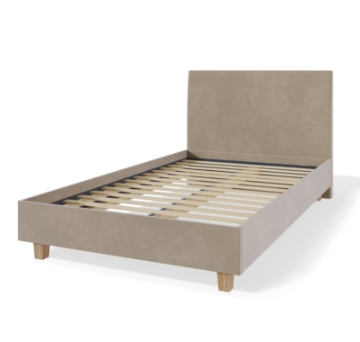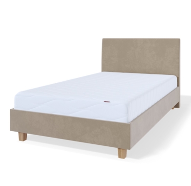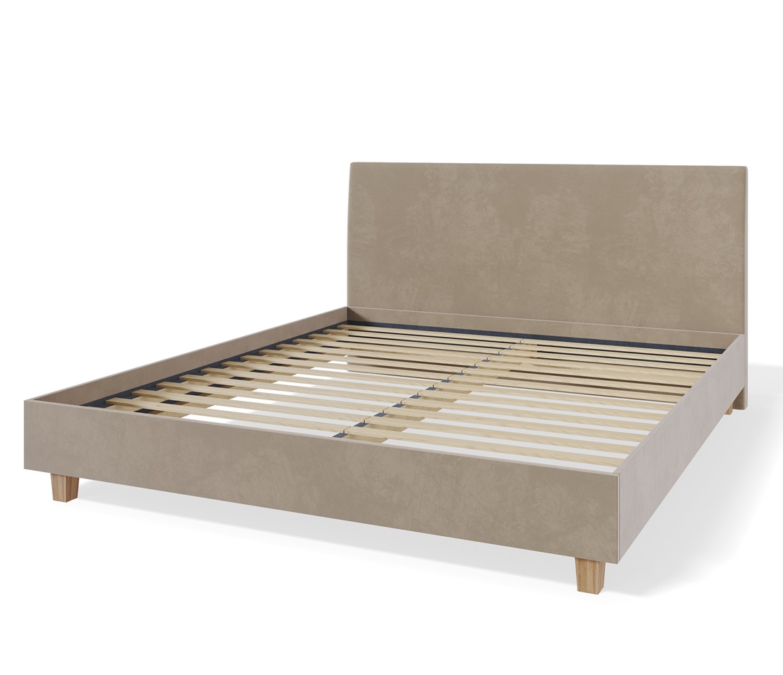 Voodiraam on kaetud kvaliteetse kangaga ning selle tugev puitkarkass tagab pikaajalise vastupidavuse.