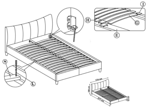 Voodi karkass on puidust, kaetud eco nahaga. Jalad puidust, pöögi värvi.