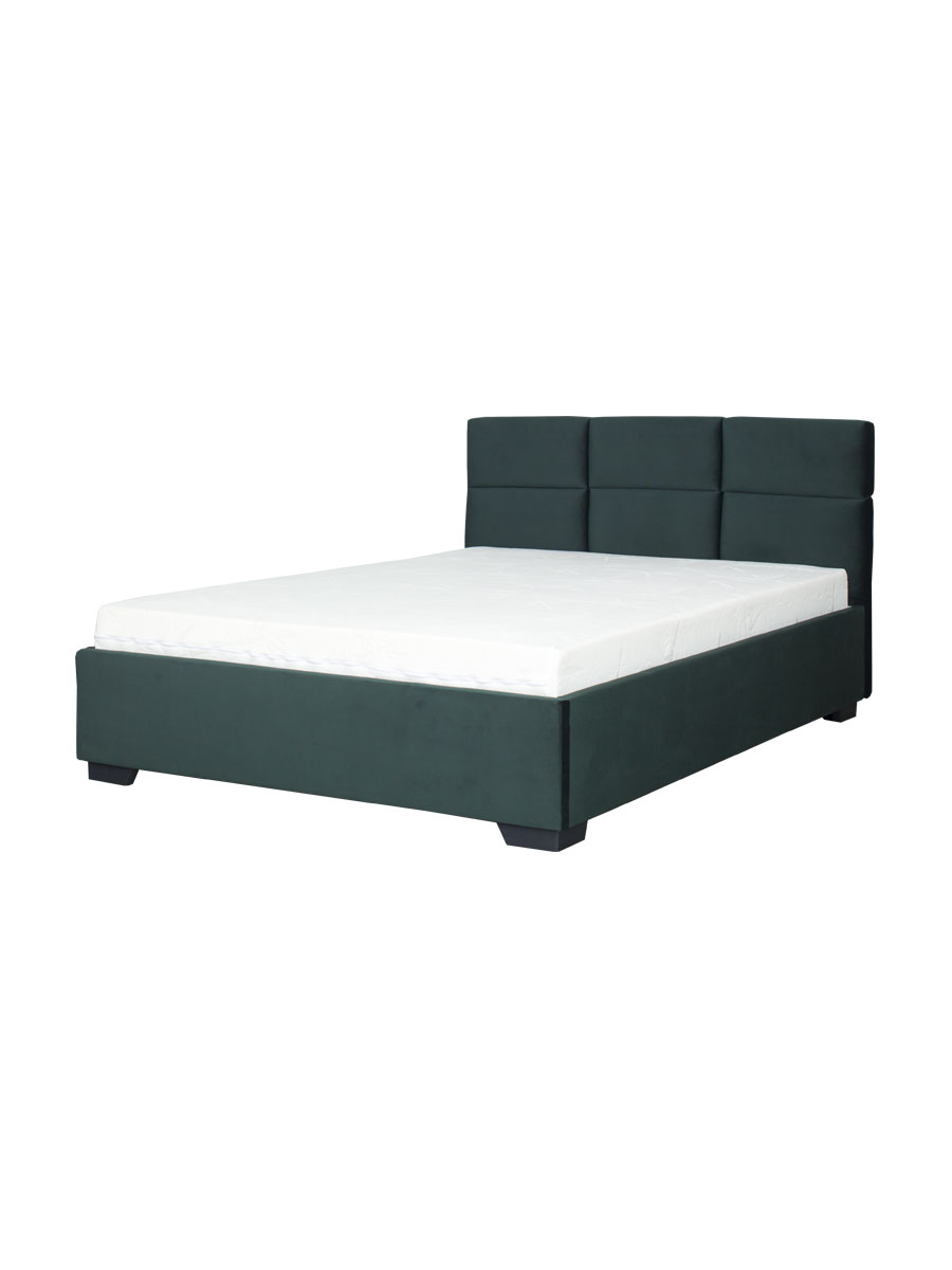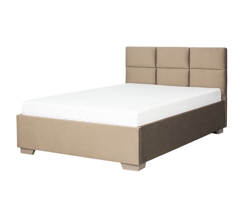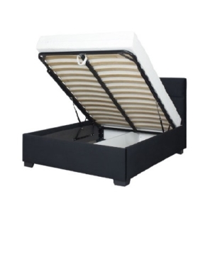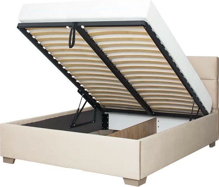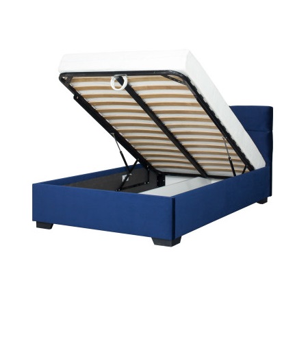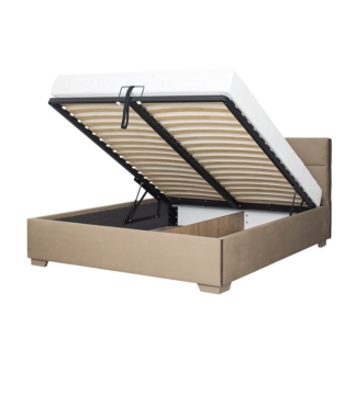 Voodil on ülestõstetav madratsiraam, mille all on mahukas pesukast, karkass on kaetud kangaga.