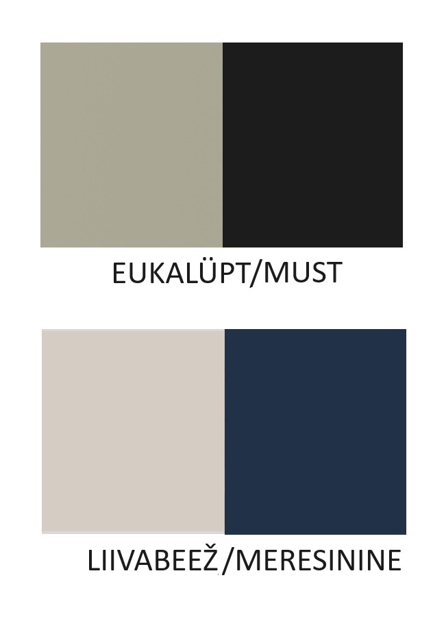 Värvivalik: eukalüpt/must; liivabeež/meresinine.